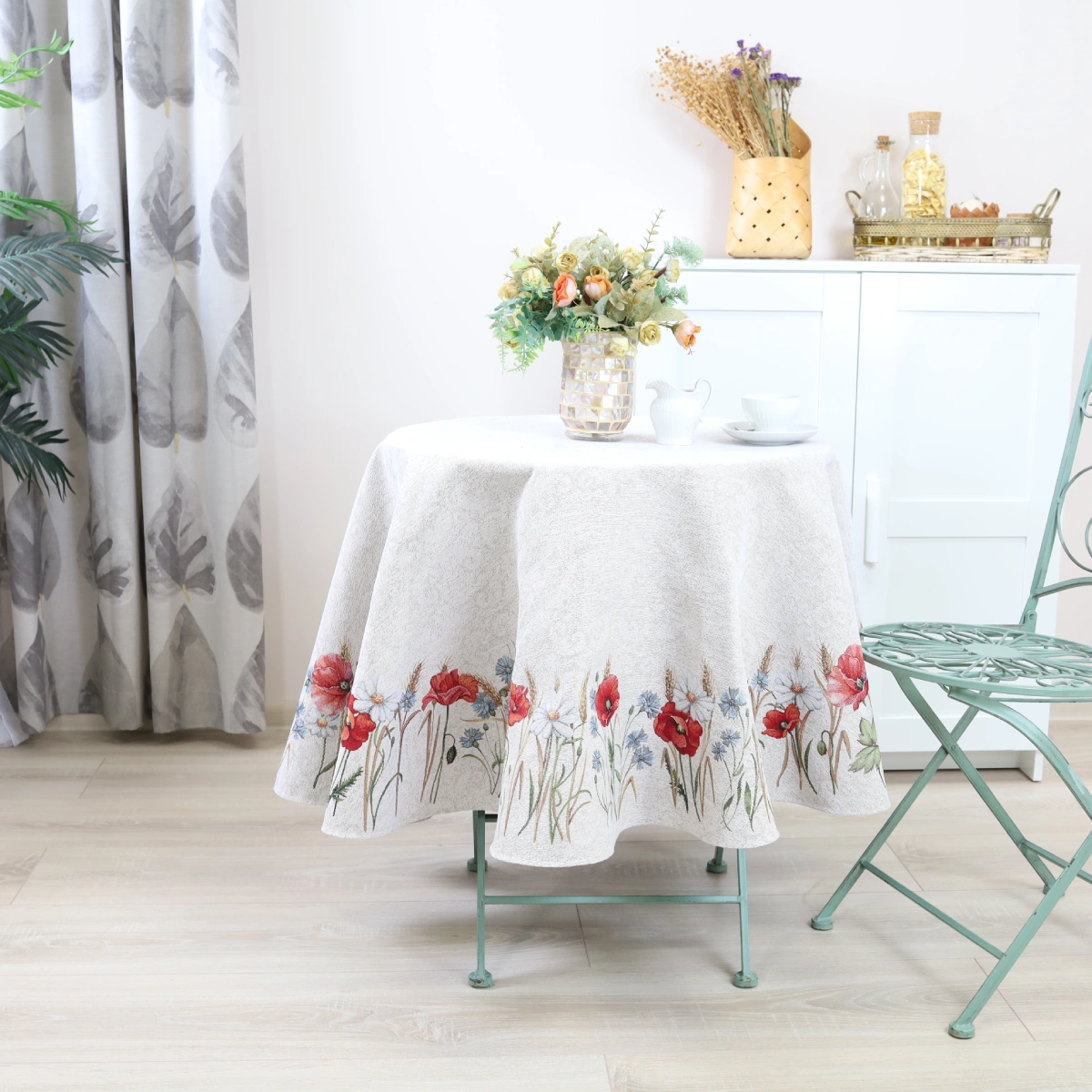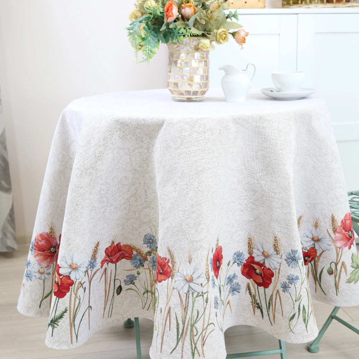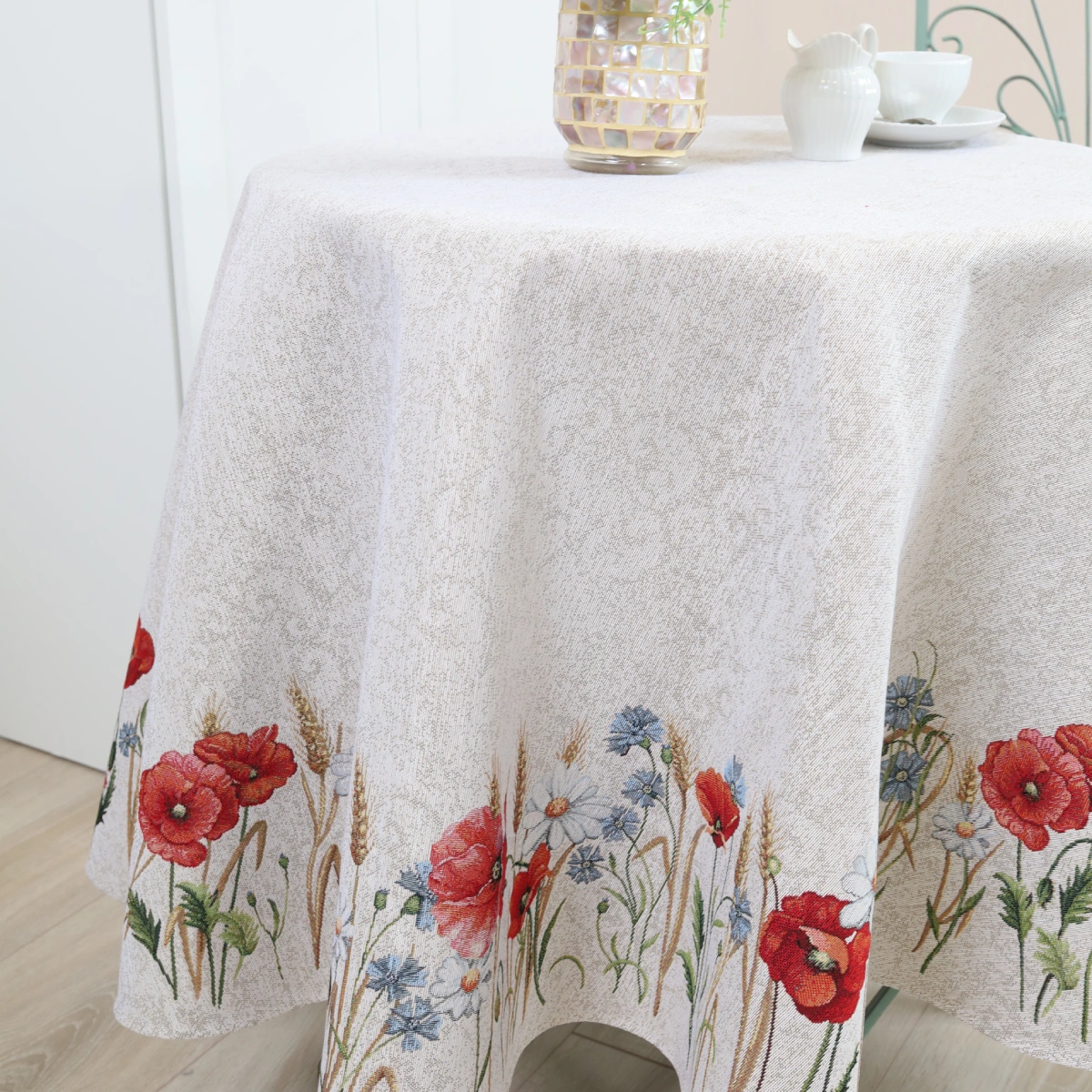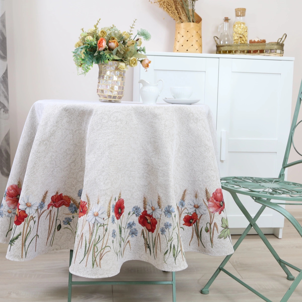 Apvali gobeleninė staltiesė Rugiai ir aguonos
