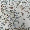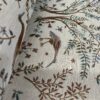 - Spalva ir raštai: Subtilus, medžiais ir paukščiais dekoruotas audinys.