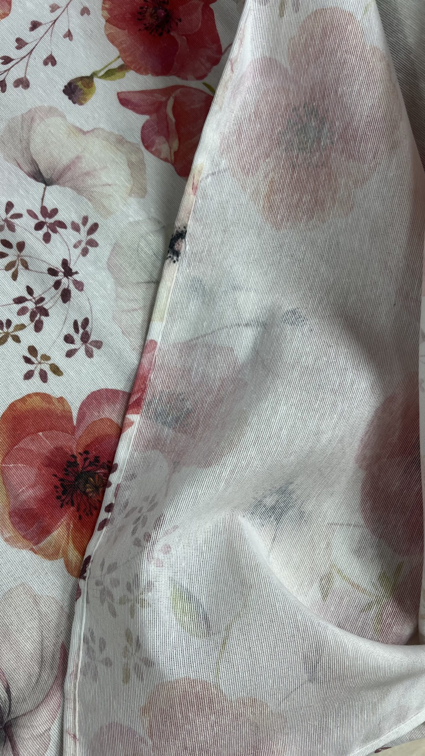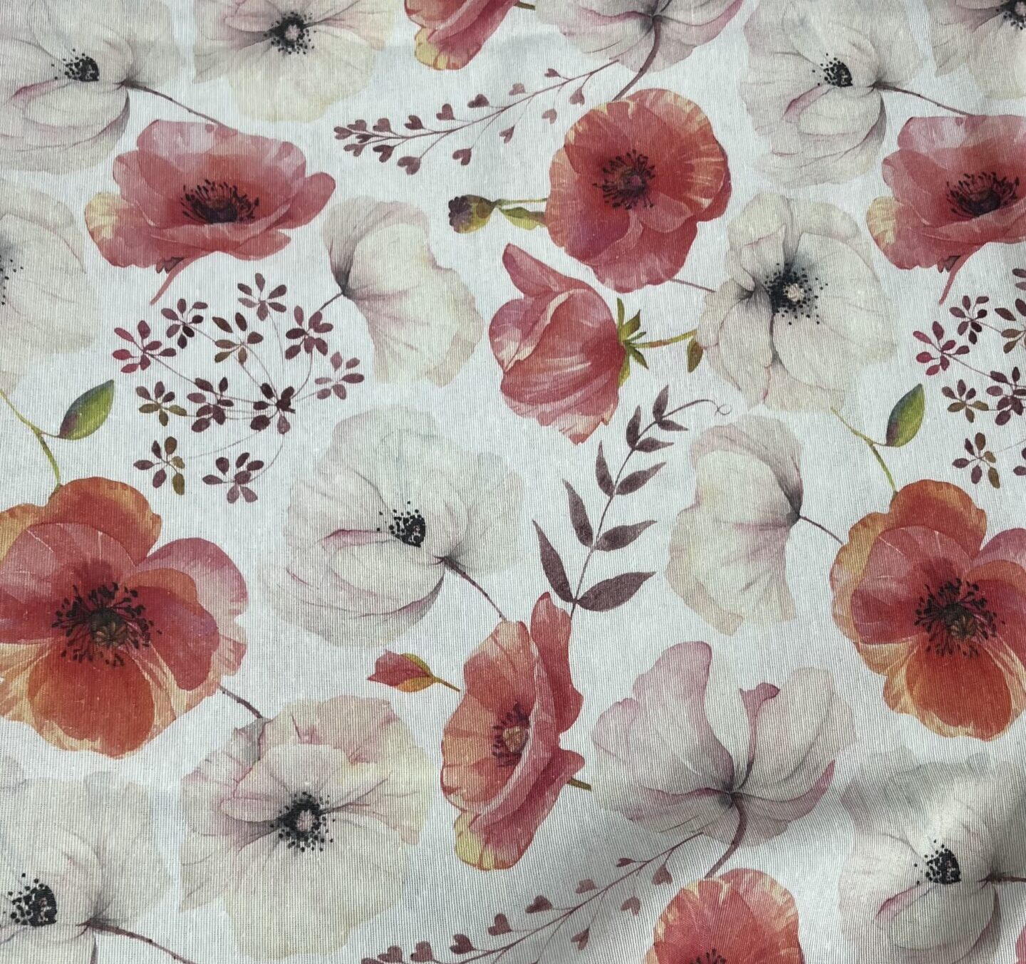 - Spalva ir raštai: Vientisas, gėlėto ornamento raštas