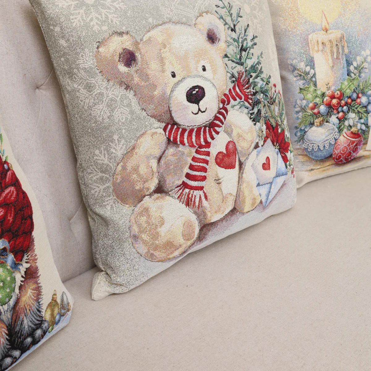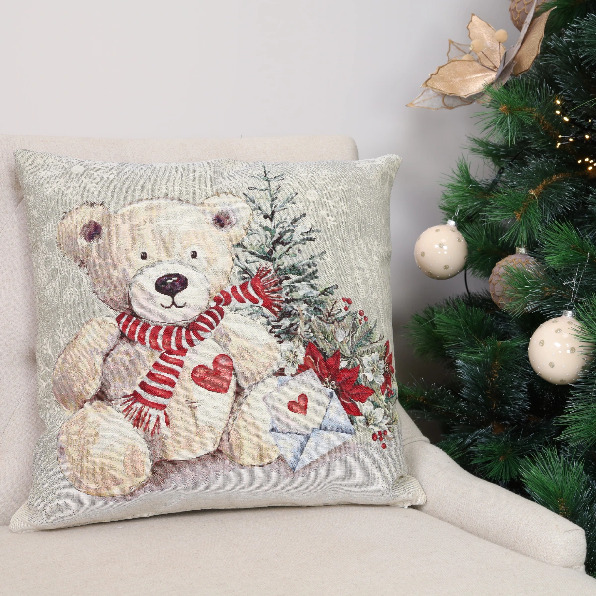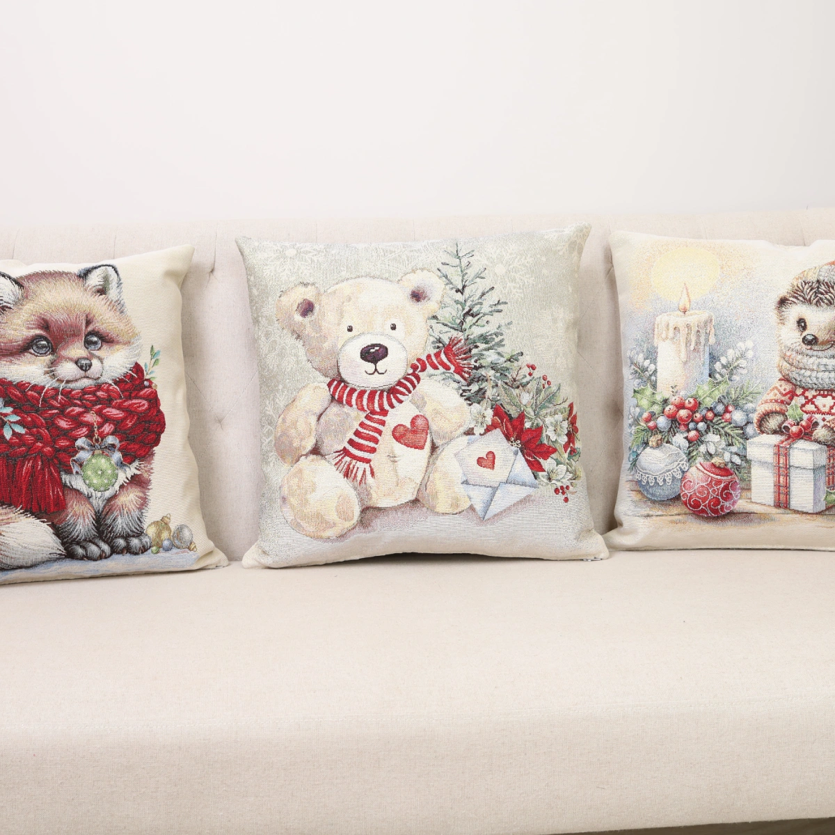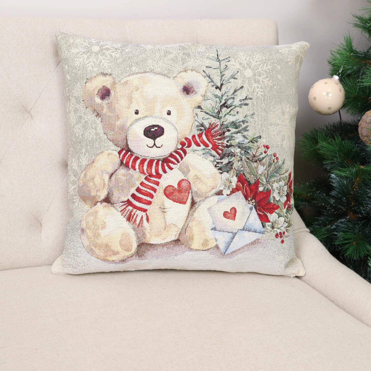 Dvipusis pagalvės užvalkalas Dovanų meškutis – tai puiki dovana kiekvienam Kalėdų megėjui.