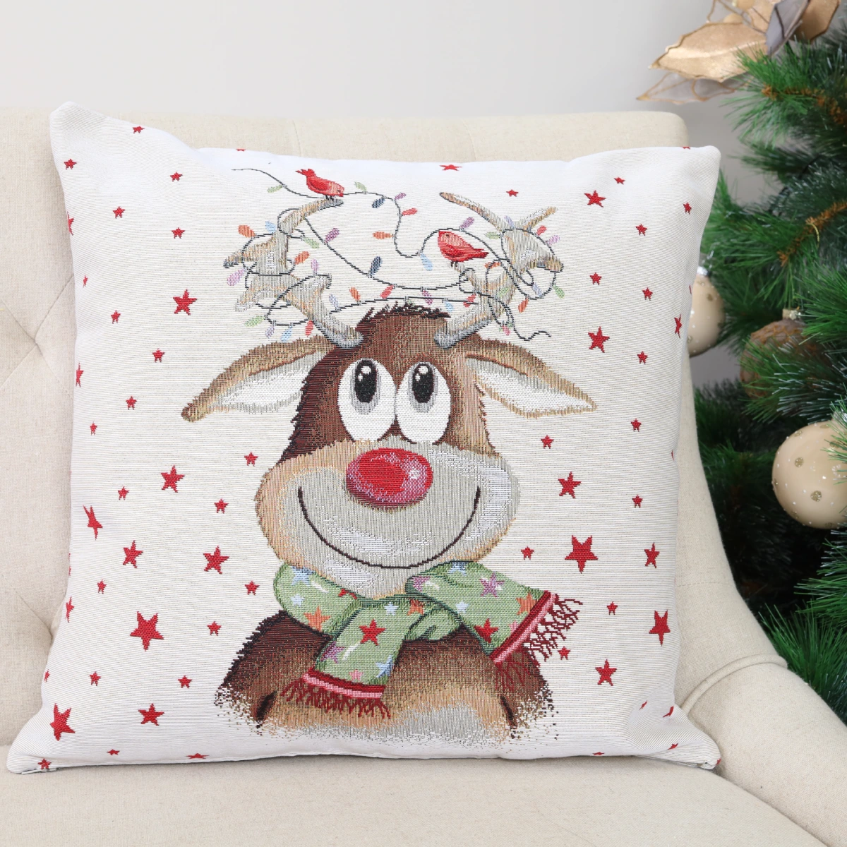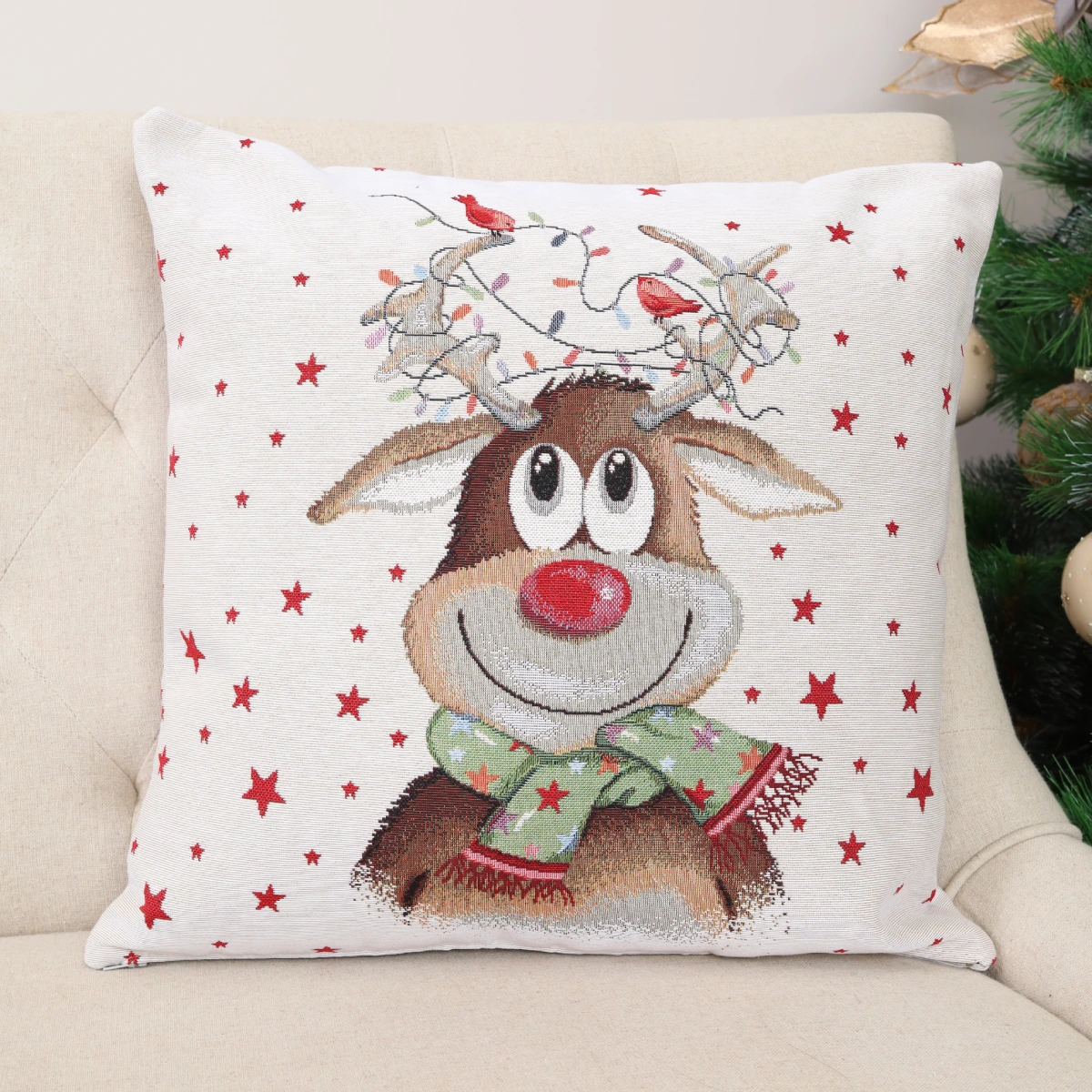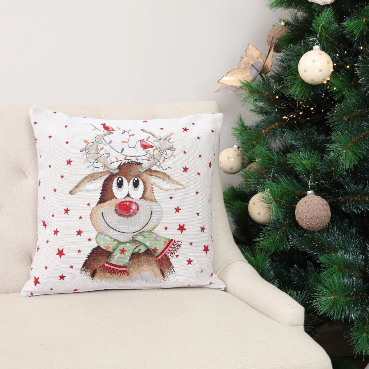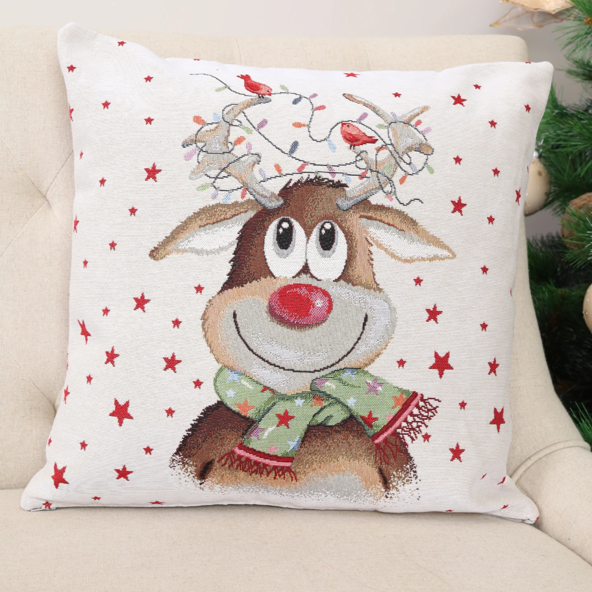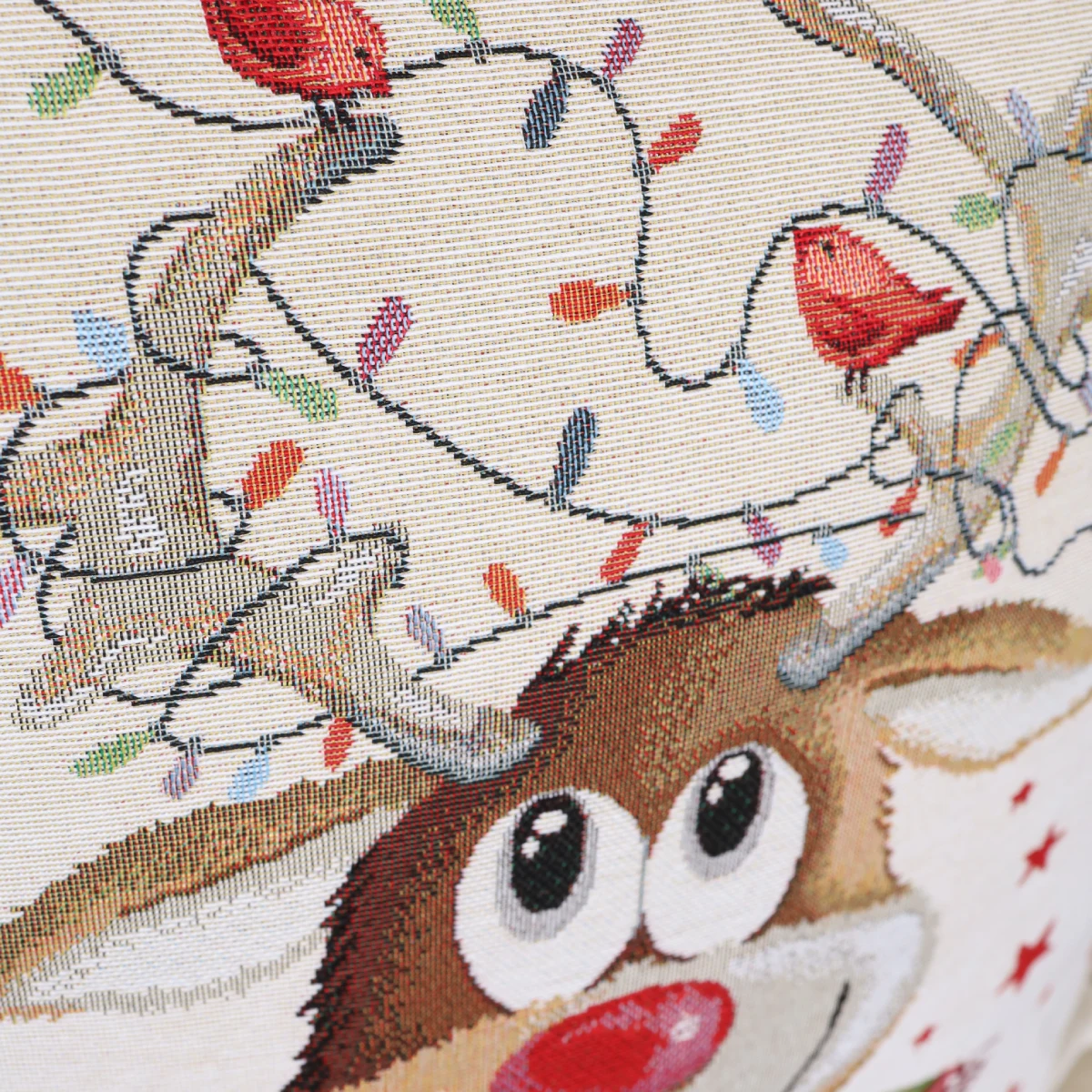 Dvipusis pagalvės užvalkalas Elnias ir girlianda – tai puiki dovana kiekvienam Kalėdų megėjui.