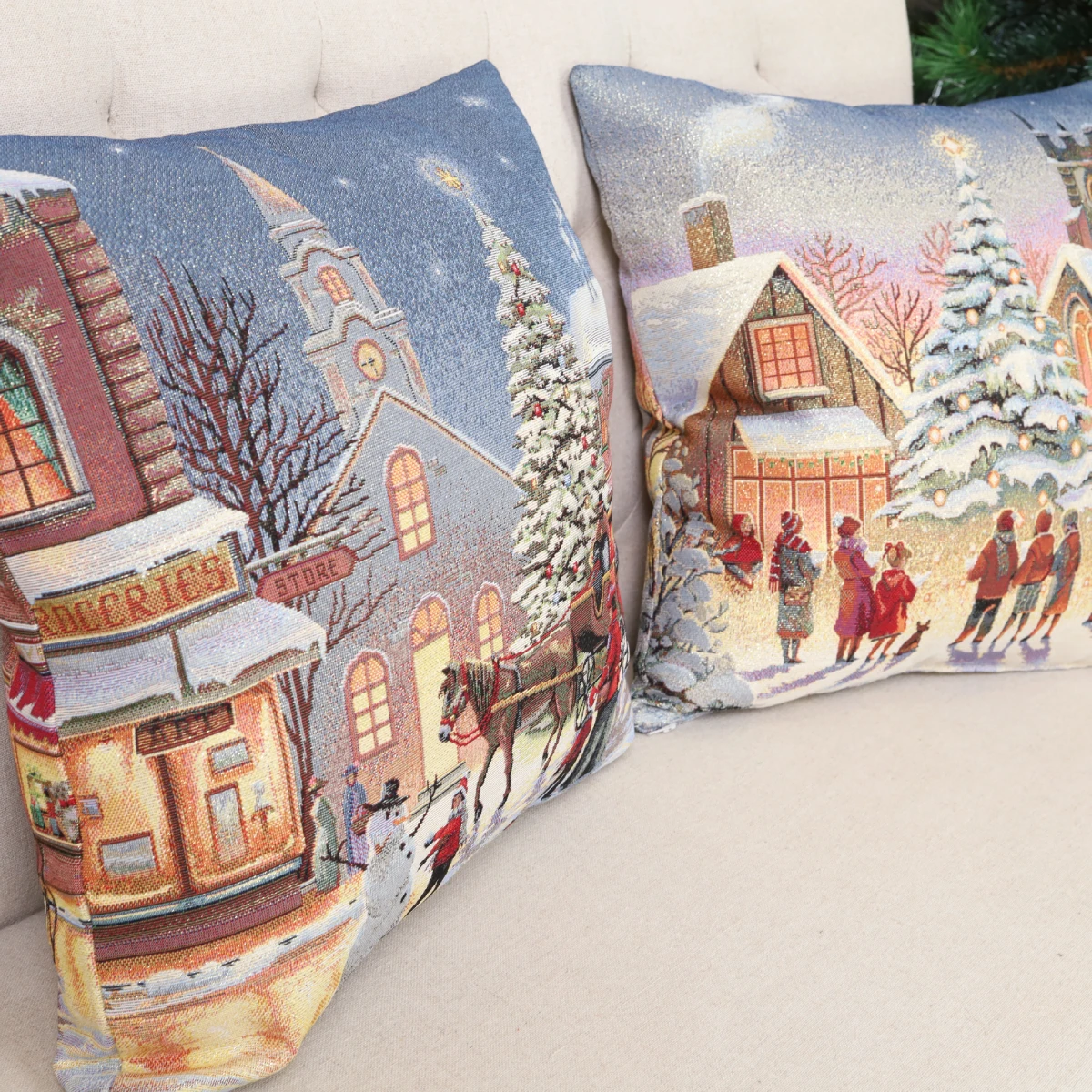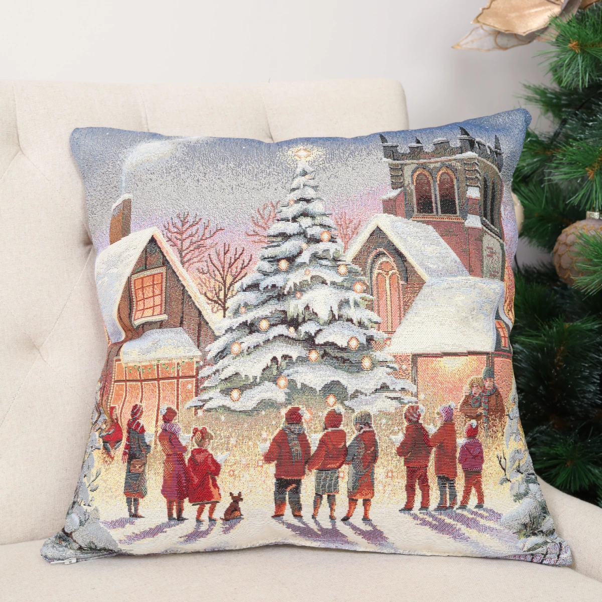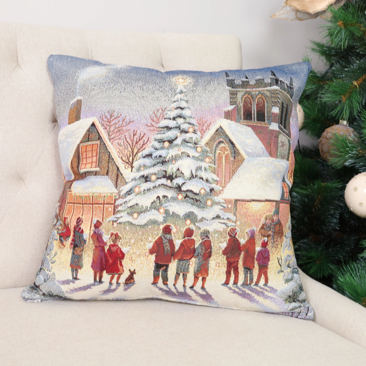 Dvipusis pagalvės užvalkalas Šventinė aikštė – tai puiki dovana kiekvienam Kalėdų megėjui.