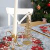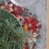 Puošni, elegantiška, tvirto gobeleninio audinioKalėdinė stalo servetėlė Melsvas Puansetijų Vainikas, papuošta kalėdinių gėlių motyvu. Tai puiki, subtili ir įsimintina Kalėdų dovana.