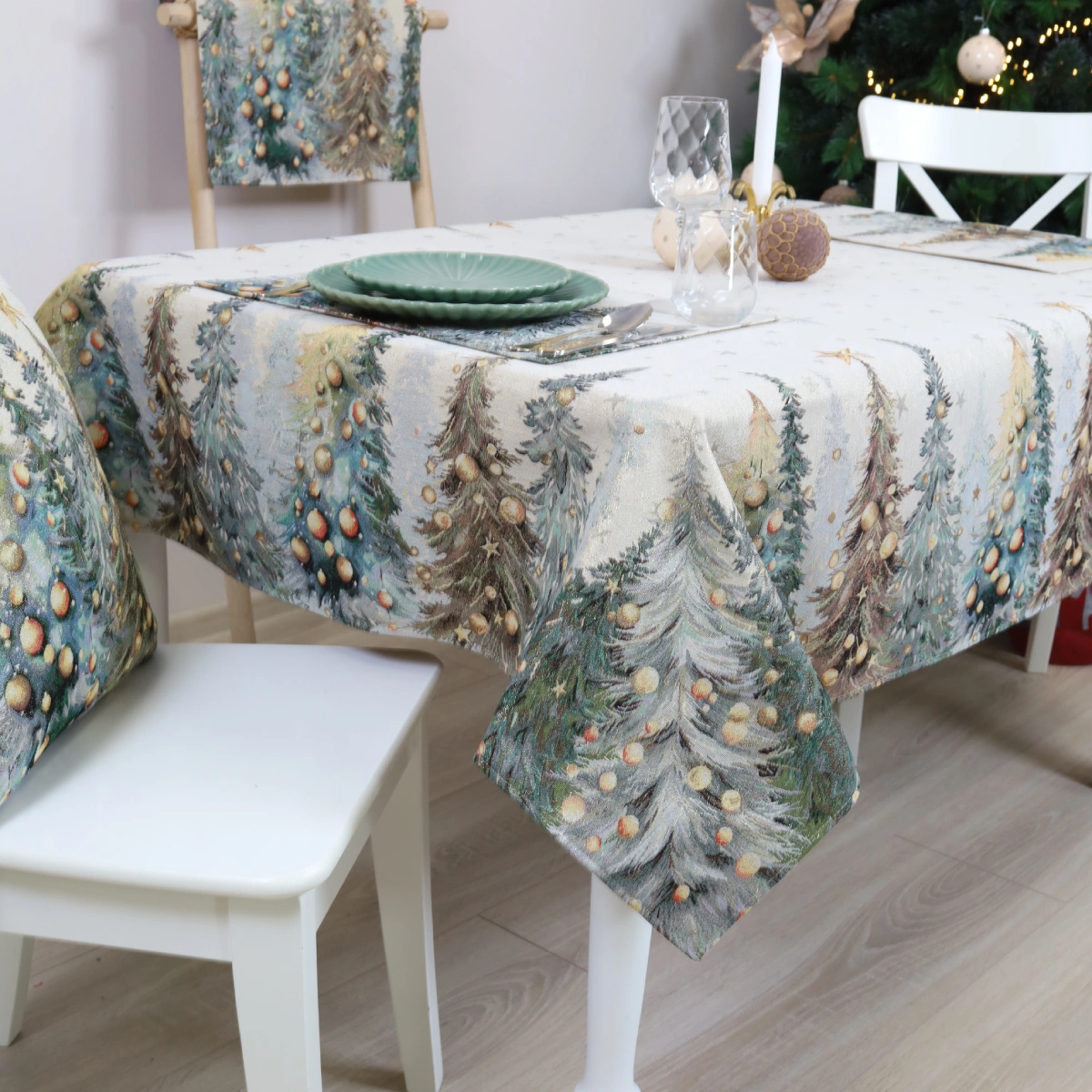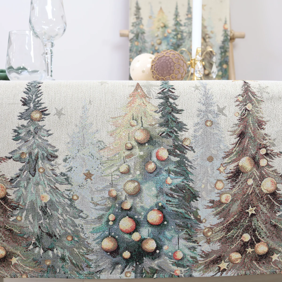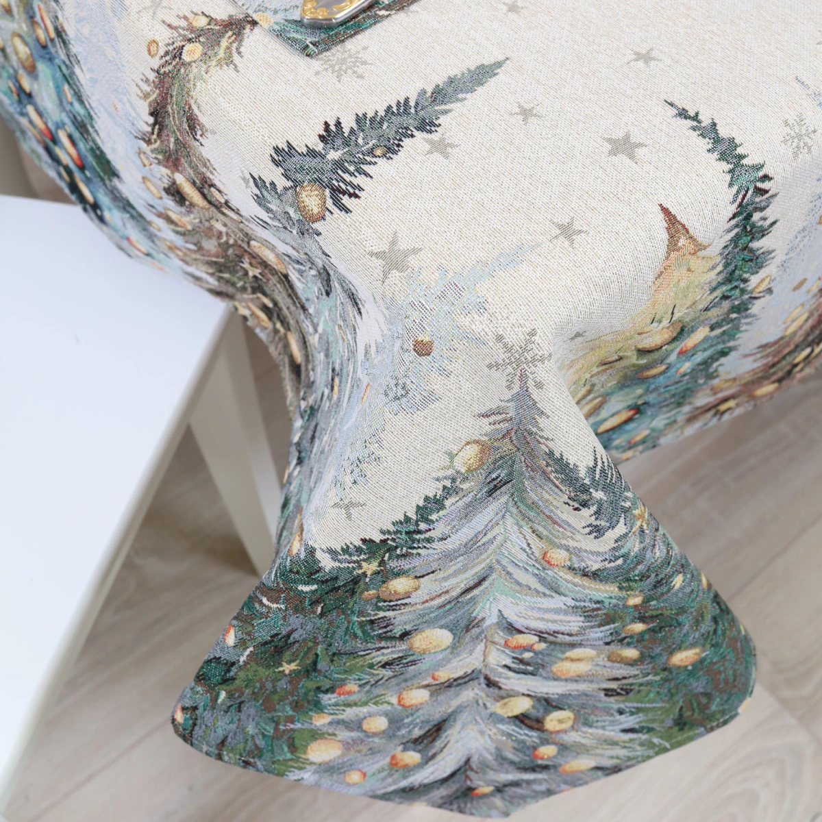 Puošni, elegantiška, tvirto gobeleninio audinio Kalėdinė staltiesė Kalėdos grįžta namo, papuošta kalėdiniais motyvais. Tai puiki, subtili ir įsimintina Kalėdų dovana.