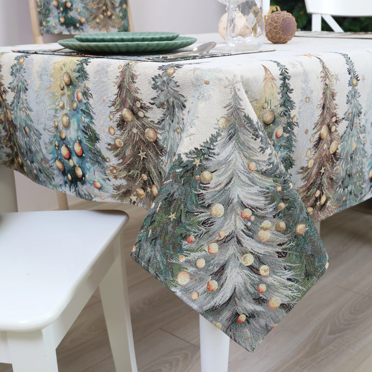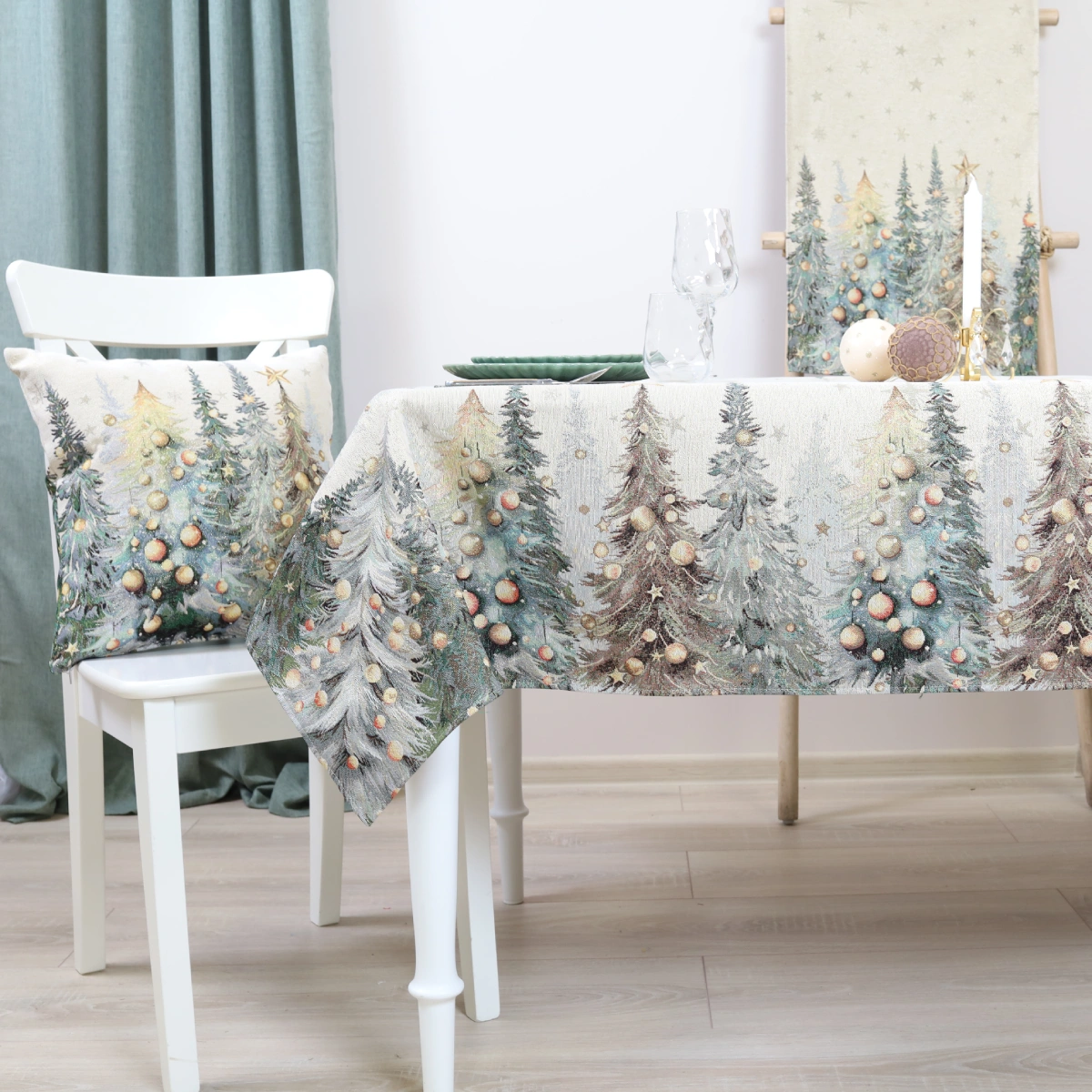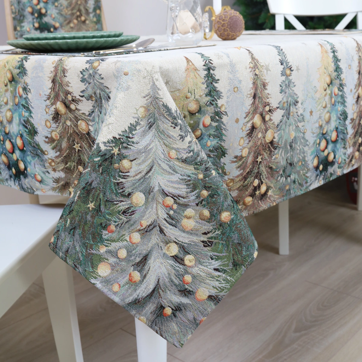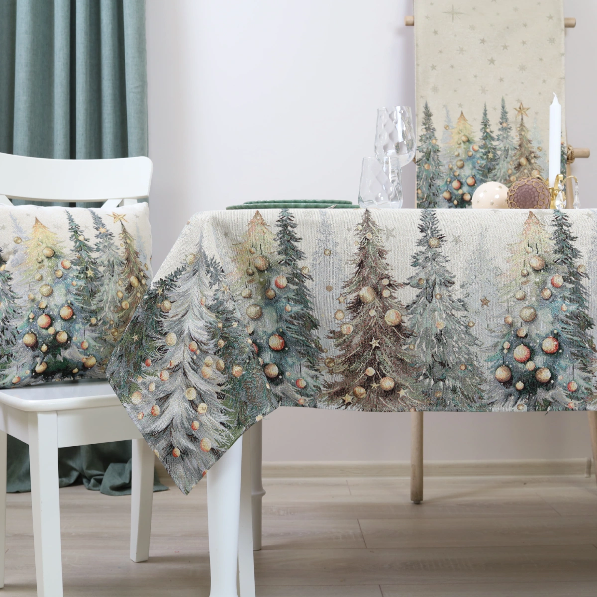 Puošni, elegantiška, tvirto gobeleninio audinio Kalėdinė staltiesė Kalėdos grįžta namo, papuošta kalėdiniais motyvais. Tai puiki, subtili ir įsimintina Kalėdų dovana.