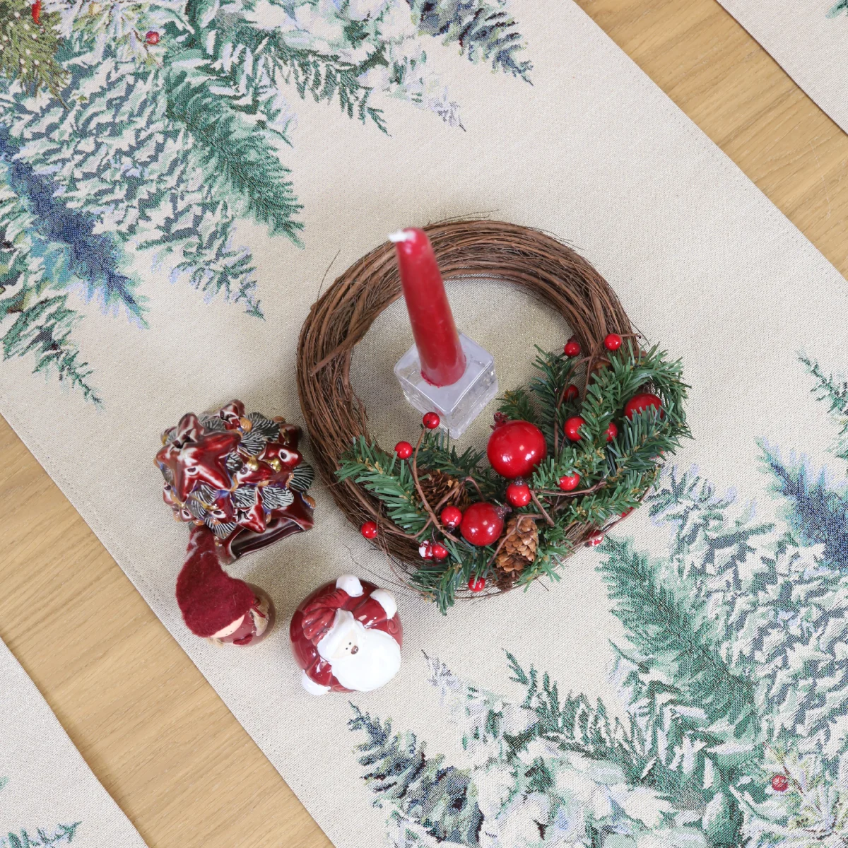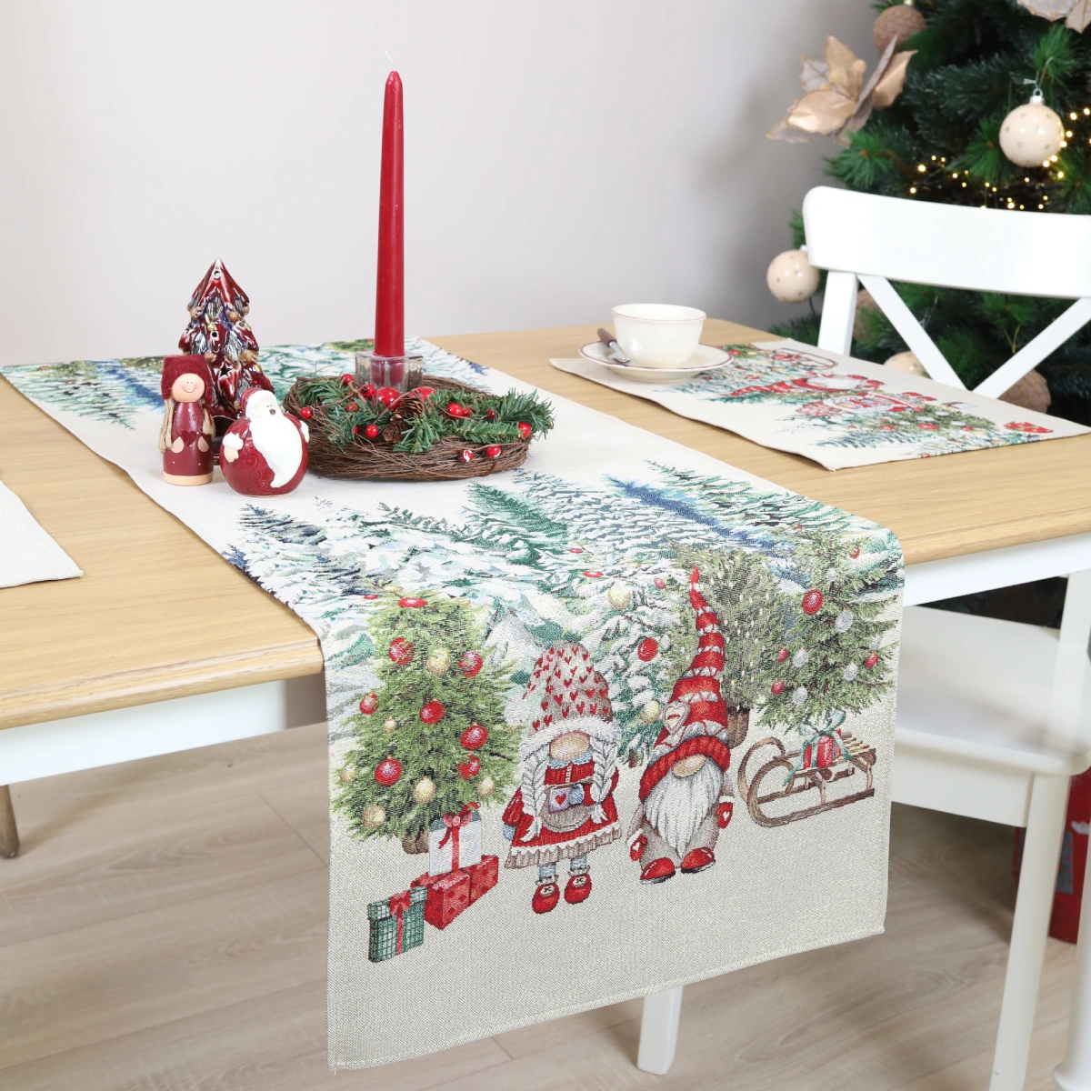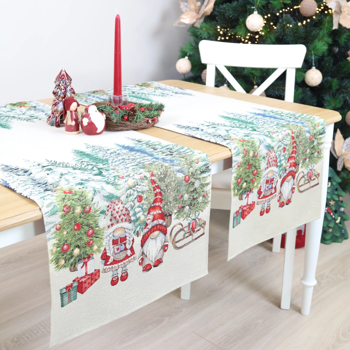 pasiūtas iš gobeleninio audinio – subtilaus, puošnaus, prabangaus ir visada madingo. Dailaus audimo medžiaginiai stalo takeliai puošia interjerą, o tvirtas gobeleninis audinys apsaugo stalą nuo “karštų” dėmių, įbrėžimų ir bendro stalo nusidėvėjimo. Kai norisi kitokių, ypatingų stalo papuošimų, stalo dekoravimui kviečiame įsigyti medžiaginį takelį iš gobeleninio audinio.