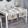 Kalėdinis stalo takelis Kalėdų miestelis pasiūtas iš gobeleninio audinio – subtilaus, puošnaus, prabangaus ir visada madingo. Dailaus audimo medžiaginiai stalo takeliai puošia interjerą, o tvirtas gobeleninis audinys apsaugo stalą nuo “karštų” dėmių, įbrėžimų ir bendro stalo nusidėvėjimo. Kai norisi kitokių, ypatingų stalo papuošimų, stalo dekoravimui kviečiame įsigyti medžiaginį takelį iš gobeleninio audinio.