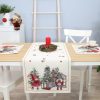Kalėdinis Stalo takelis Nykštukų Karalystė pasiūtas iš gobeleninio audinio – subtilaus, puošnaus, prabangaus ir visada madingo. Dailaus audimo medžiaginiai stalo takeliai puošia interjerą, o tvirtas gobeleninis audinys apsaugo stalą nuo “karštų” dėmių, įbrėžimų ir bendro stalo nusidėvėjimo. Kai norisi kitokių, ypatingų stalo papuošimų, stalo dekoravimui kviečiame įsigyti medžiaginį takelį iš gobeleninio audinio.