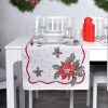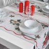 Kalėdinis stalo takelis Puansetija ir kankorėžiai pasiūtas iš gobeleninio audinio – subtilaus, puošnaus, prabangaus ir visada madingo. Dailaus audimo medžiaginiai stalo takeliai puošia interjerą, o tvirtas gobeleninis audinys apsaugo stalą nuo “karštų” dėmių, įbrėžimų ir bendro stalo nusidėvėjimo. Kai norisi kitokių, ypatingų stalo papuošimų, stalo dekoravimui kviečiame įsigyti medžiaginį takelį iš gobeleninio audinio.