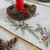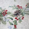 Kalėdinis Stalo takelis Žiemos Asorti pasiūtas iš gobeleninio audinio – subtilaus, puošnaus, prabangaus ir visada madingo. Dailaus audimo medžiaginiai stalo takeliai puošia interjerą, o tvirtas gobeleninis audinys apsaugo stalą nuo “karštų” dėmių, įbrėžimų ir bendro stalo nusidėvėjimo. Kai norisi kitokių, ypatingų stalo papuošimų, stalo dekoravimui kviečiame įsigyti medžiaginį takelį iš gobeleninio audinio.