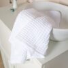 Waffle (korėtos tekstūros) pynimas – ne tik estetiškas, bet ir padidina sugeriamumą bei greičiau džiūsta nei įprasti rankšluosčiai.