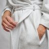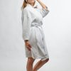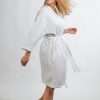Medvilninis baltos spalvos chalatas su dvejomis kišenėmis, ties juosmeniu surišamas diržu ypač patiks tiems, kas mėgsta natūralius, jaukiai švelnius gaminius.