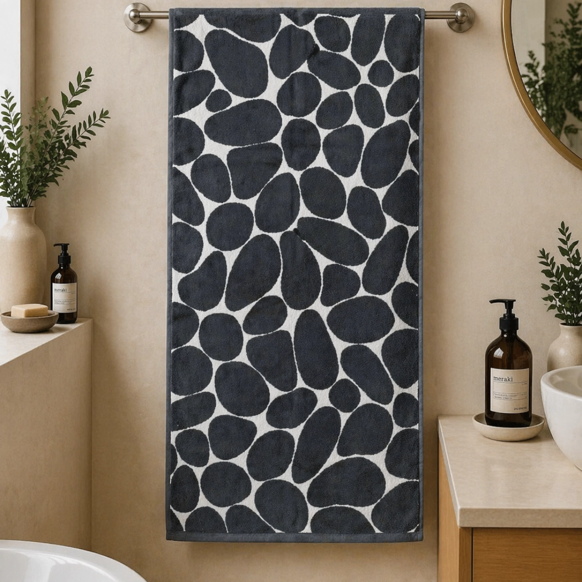 Pilkas vonios rankšluostis Akmenėliai – tai puiki dovana visiems. Šie rankšluosčiai yra natūralūs ir pagaminti iš aukštos kokybės medžiagų.