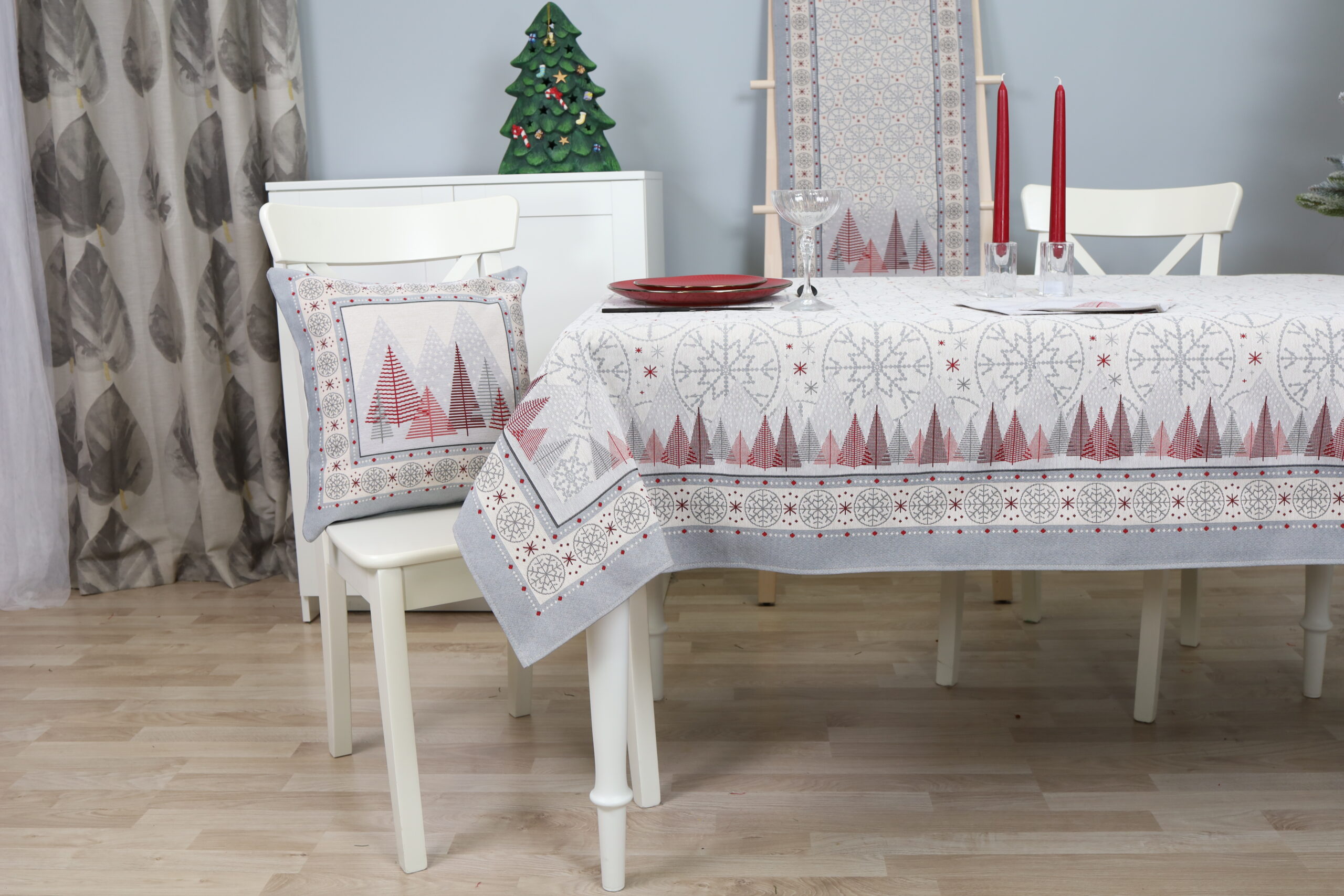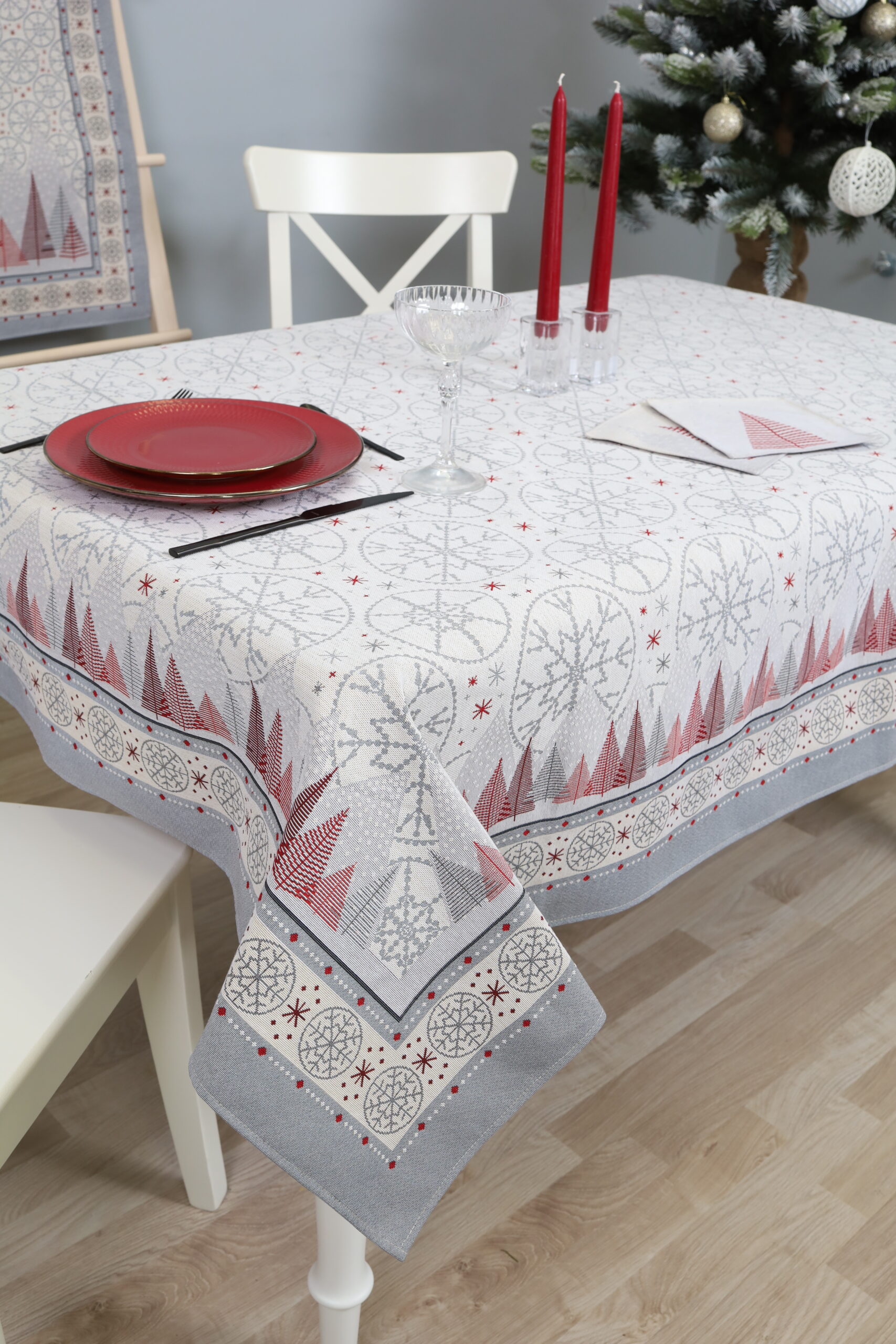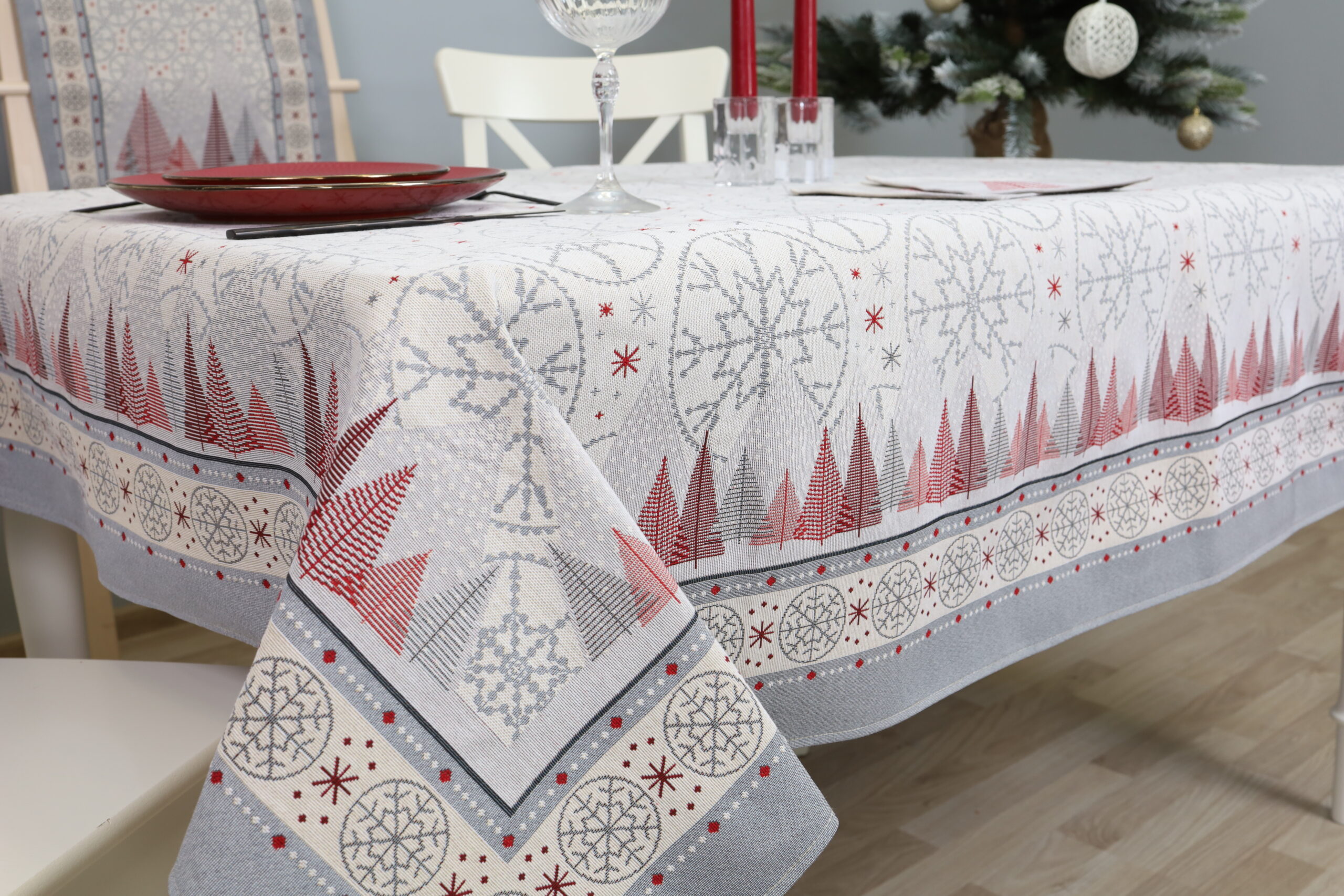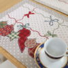 Išskirtinio dizaino gobeleninė staltiesė pagyvins namų interjerą ir suteiks stalui išskirtinumo. Tvirtas, austas gobelenas pasižymi aukšta kokybe ir ilgaamžiškumu – tai puikus pasirinkimas tiek kasdienai, tiek šventėms. Prie šios staltiesės galite priderinti stalo servetėles iš tos pačios kolekcijos. Stalo servetėles rasite čia.