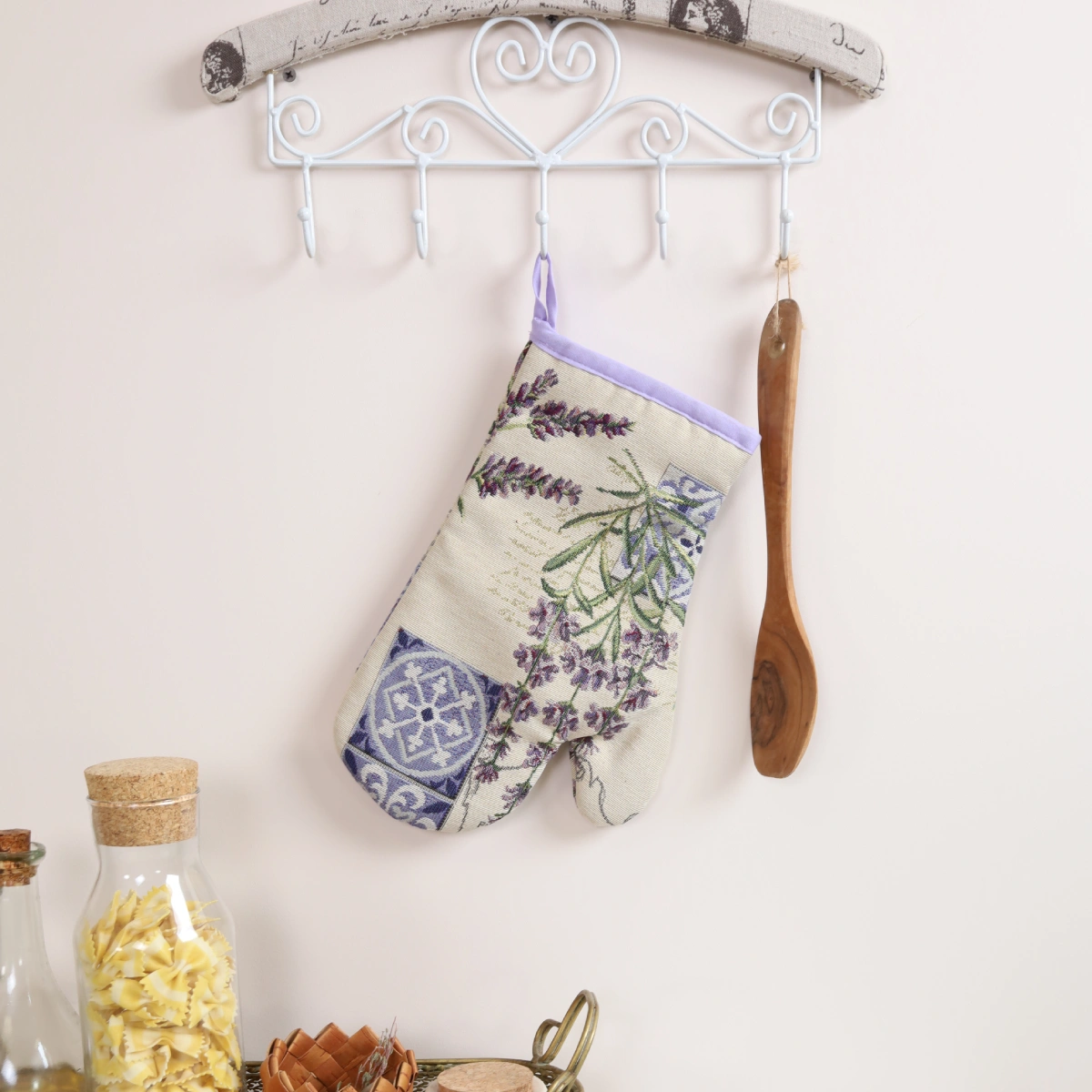 Virtuvinė pirštinė Levandos ornamentuose